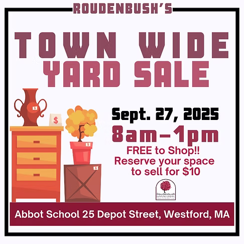 Come treasure hunt at our semi annual yard sale at Abbot School, or grab a map at Roudenbush Community Center (65 Main Street) of participating households and go on an adventure! Maps indicate houses around town that will be holding yard sales. If you are selling at Abbot please bring your own table to set up, pull up to unload and then move your car to the parking lot next to the school. We would like the driveway area in front of the school available for shoppers to park and have easy access to the sale.